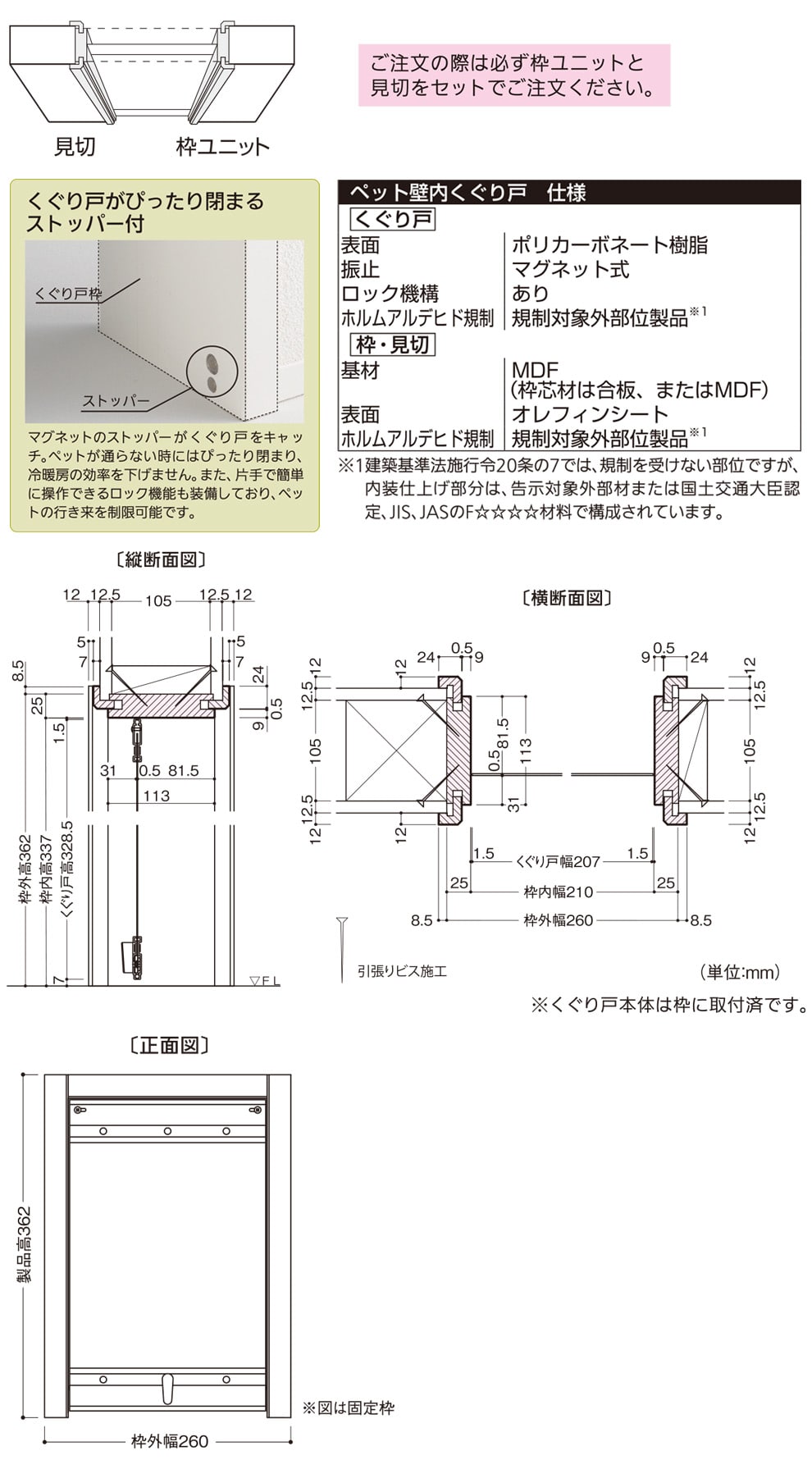 ペット壁内くぐり戸 枠ユニット パウダーホワイト