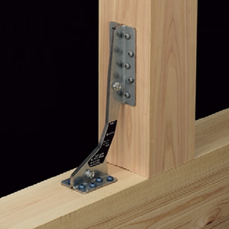 柱と横架材の接合に。ビスによる施工で25kNを超える耐力を実現します。その他、仕口の補強、柱の補強・交換、ブレースなど、最小限の開口で取付けしやすいリフォーム向けの耐震補強金物の取扱いを拡充しました。
