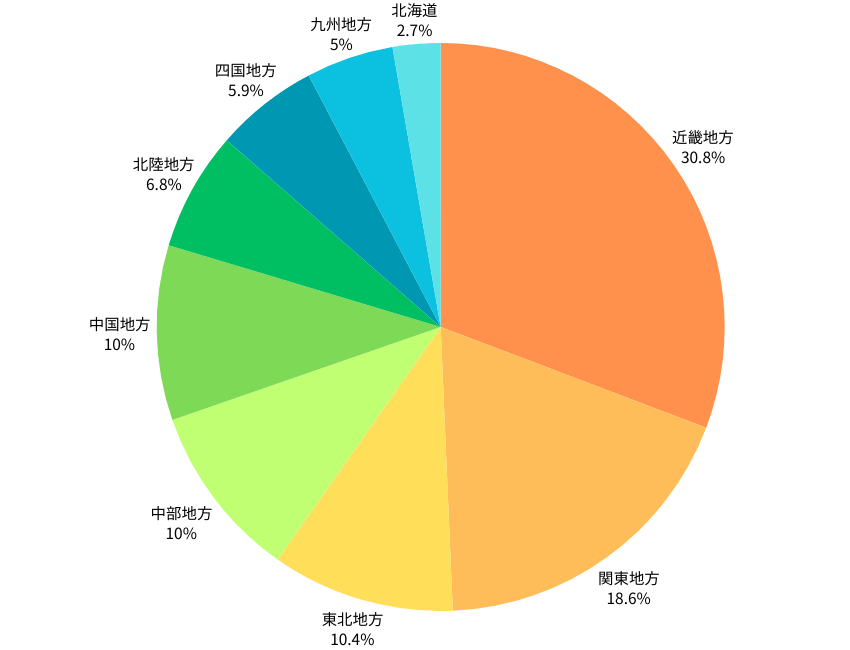 - 近畿地方が最も多く約3割を占める
