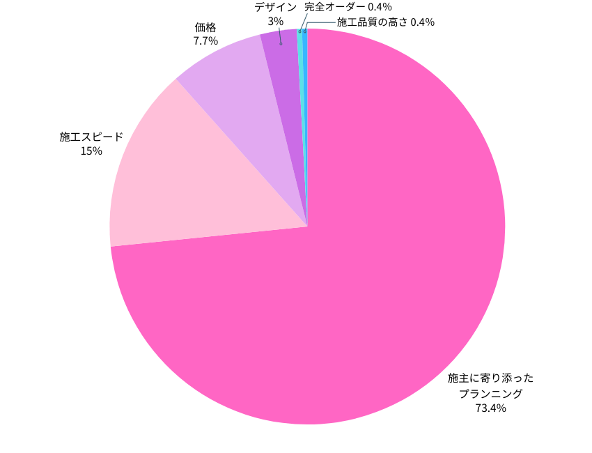 - 施工スピードは約2割と、対応力・スピード感を評価ポイントに挙げる声も多い