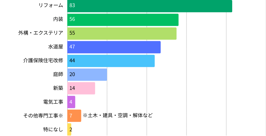 - 内装、外構・エクステリア、水道屋など専門職種のニーズも高い