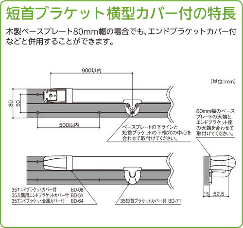 80mm幅のベースプレートにエンドブラケットと使用できます。