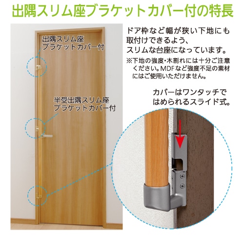 ドア枠など幅が狭い下地にも取り付けできるスリム座の出隅ブラケット