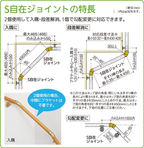 2個使用して入隅・段差解消、1個で勾配変更に対応できます