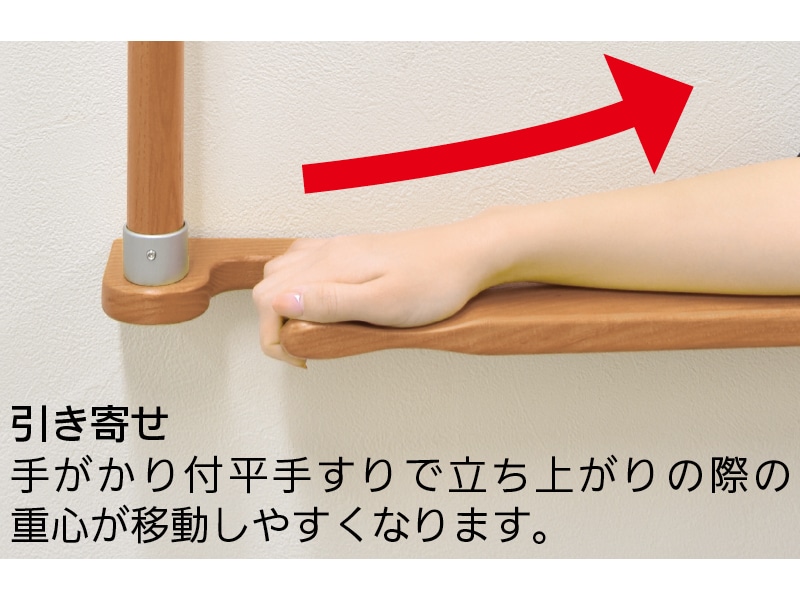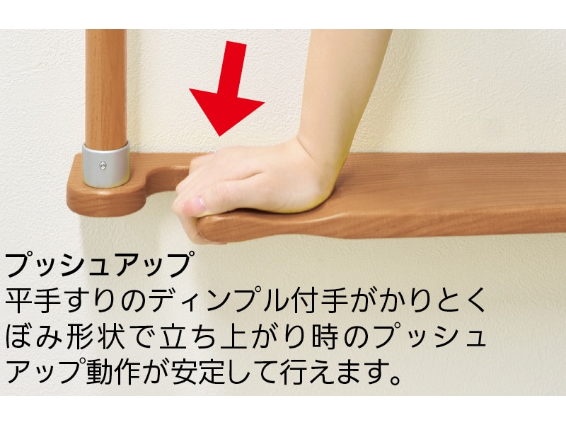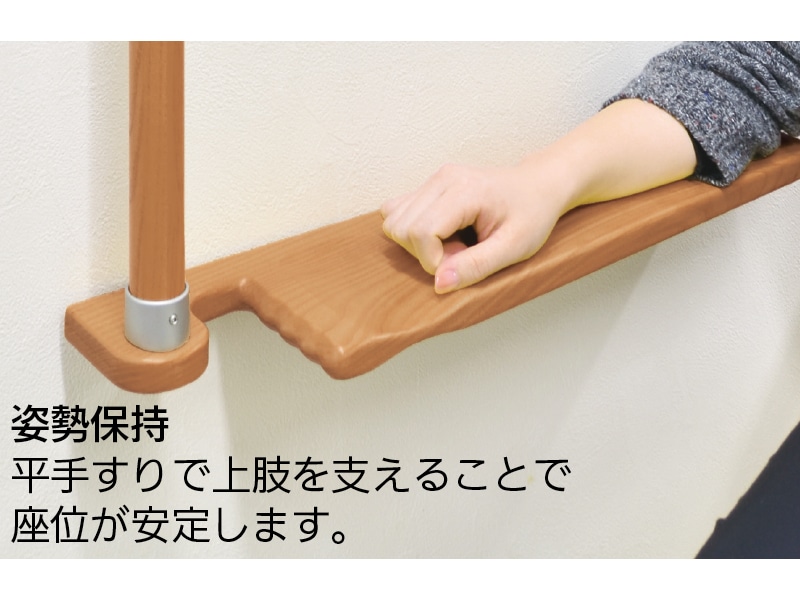 - 平手すりで上肢を支えることができ、座位が安定します。