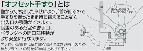 - 手すりを握ったまま、握り替えなしで出入り口を移動できます。