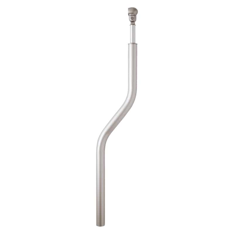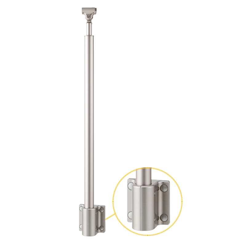 - 支柱を固定する位置と手すり棒を固定する位置が横に150mmずれたカーブ形状の支柱です。
