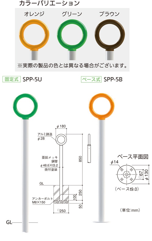 - サイズ:高さ850mm(埋め込み寸法300mm)、リング部φ180mm