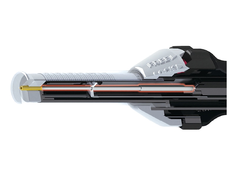 - 伸縮式インナーパイプが針のたわみを抑え、曲がらずまっすぐ刺せます。