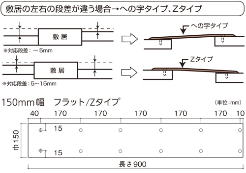 - 敷居両側の高さが同じ場合は「フラットタイプ」、異なる場合は「への字タイプ」をご使用ください。
