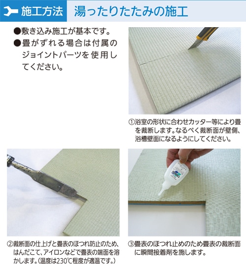 - 足触りソフトで、温かく、滑りにくいお風呂場用畳です。