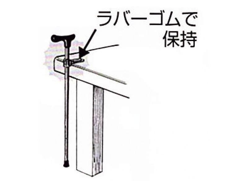 - ラバーゴムで保持してステッキの倒れを防ぎます。