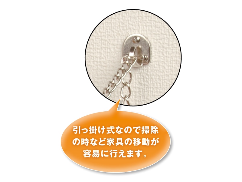 金属チェーンで家具をシッカリ固定します