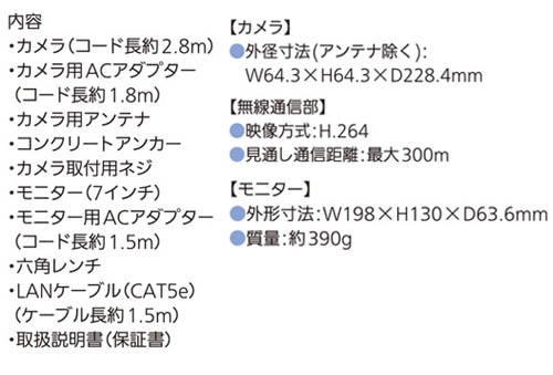 DXアンテナ ワイヤレスフルHDカメラモニターセット