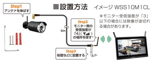 - カメラとモニター間の受信強度を改善する専用アンテナ延長ケーブル。