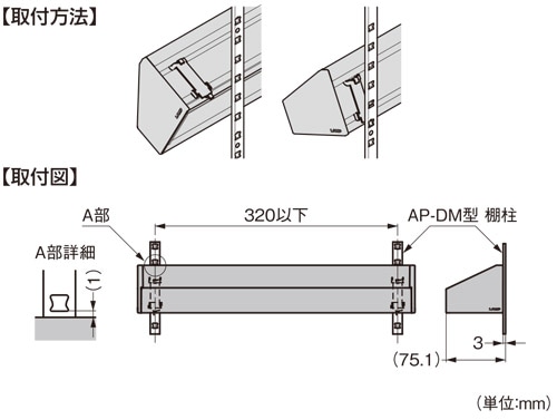 - 取付ける棚柱の間隔は320mm以下としてください。