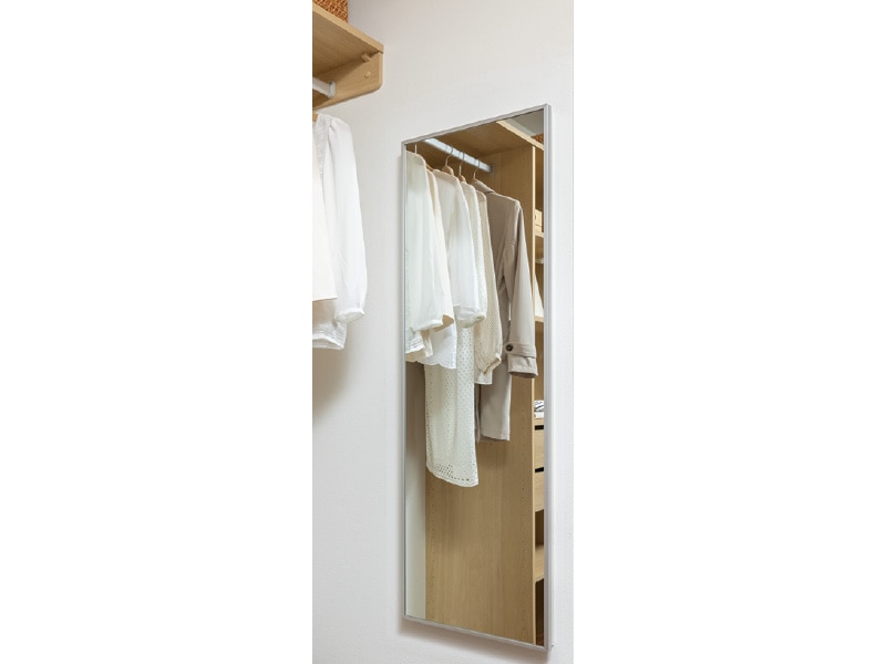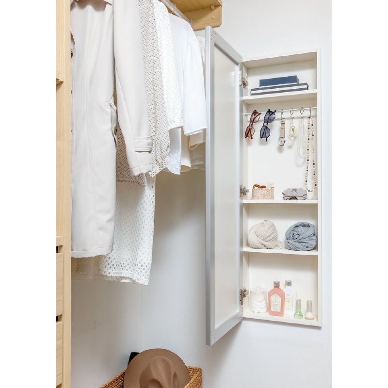- ミラー付きなので玄関の収納にも。開戸は左右共通商品です。