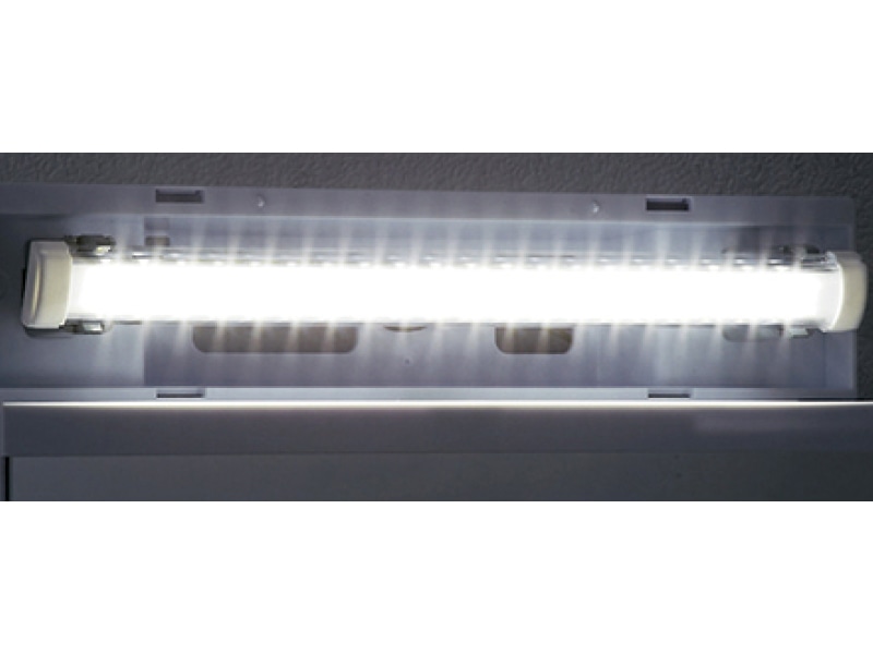 LEDライト付のキャビネットで洗面所を明るく、収納もスッキリ