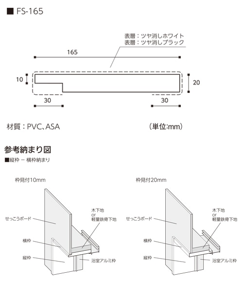 フクビUB枠開戸FS-165 三方枠 ホワイト