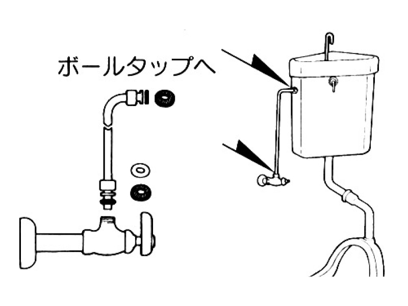 - 水洗トイレ内への給水パイプや洗面器のアングル形止水栓から