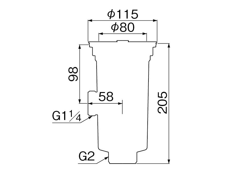 - 流し台トラップはメーカーによっては合わないものがありますので寸法をご確認ください。