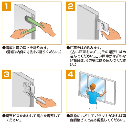 浅いサッシ溝でも対応できます!掃き出しなどの段付框用取替え戸車。