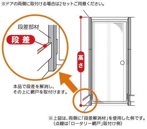 - 網戸取付時の木枠の段差を解消できます。
