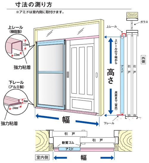 - 上下にレールを貼り付けてアミドをはめるだけ。