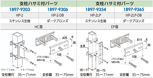 ホスクリーンパーツ支柱ハサミ付 適応タイプ:EP型 ステンレス生地