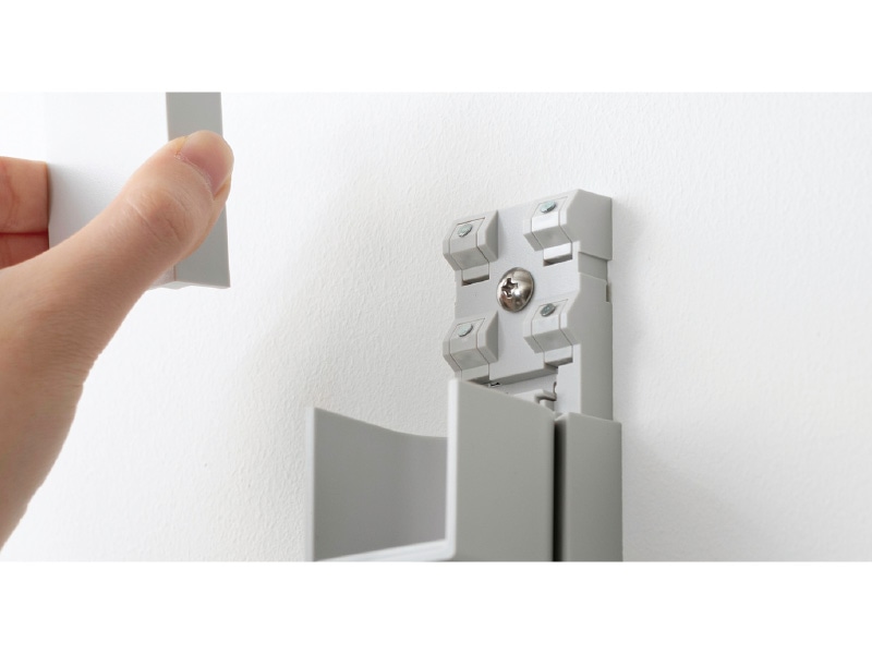- ネジとピンを組合わせ、下地がある場所・ない場所どちらにも施工が可能です。