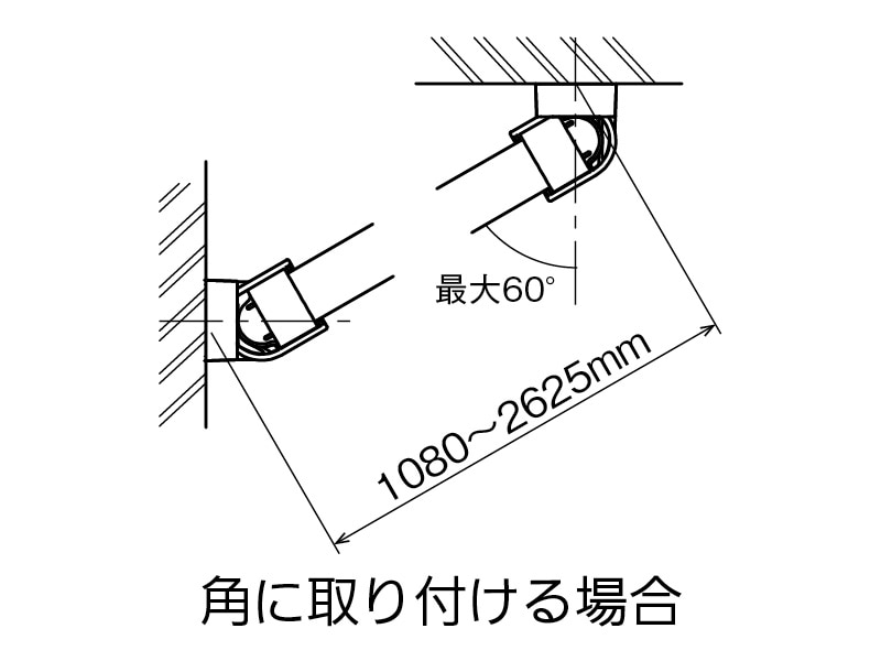- 間口は最短1080mm、最長2630mmで部屋の広さに応じて調整できます。