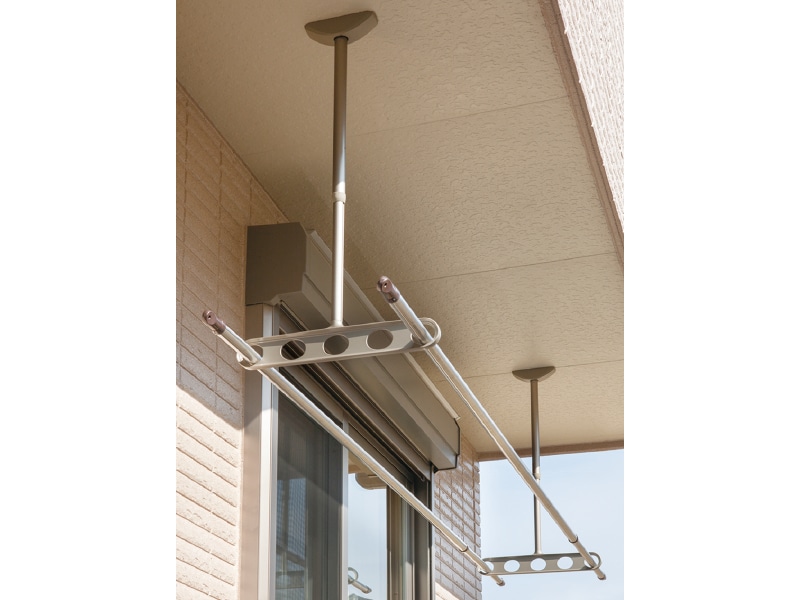 斜めアームが特徴のバルコニー物干し。