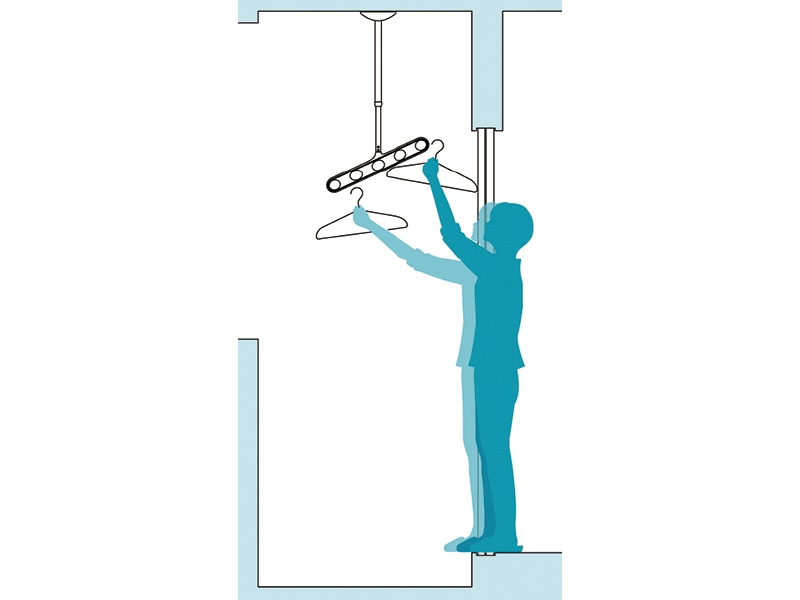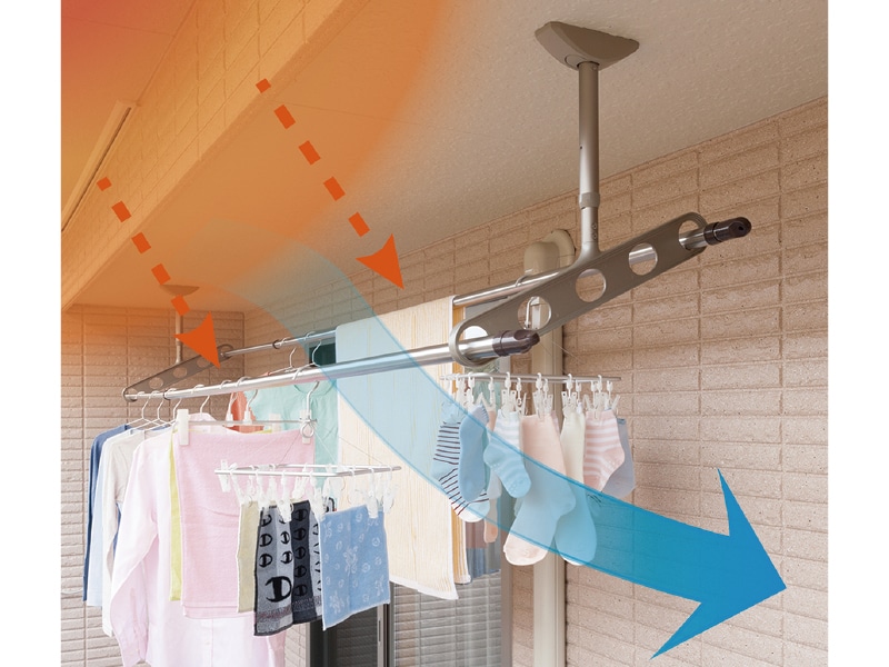 - 洗濯物を掛ける際、奥の竿にも手が届きやすい!