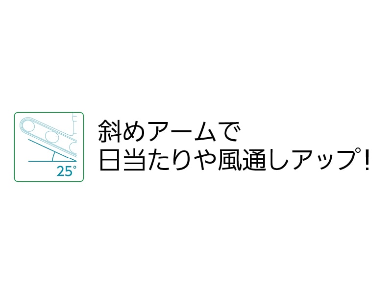 - 斜めアームで日差しが効率よく当たり、風も通りやすい!