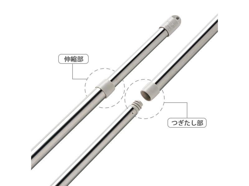 - つないで伸ばせるつぎたし伸縮式。スペースや洗濯物の量に合わせて長さ調節ができます。