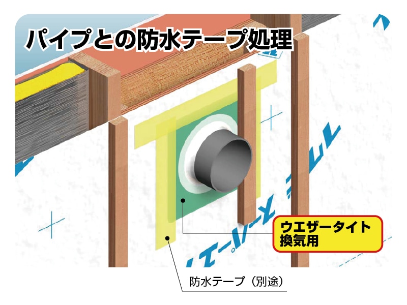 パイプとの接合部に防水テープ処理不要。