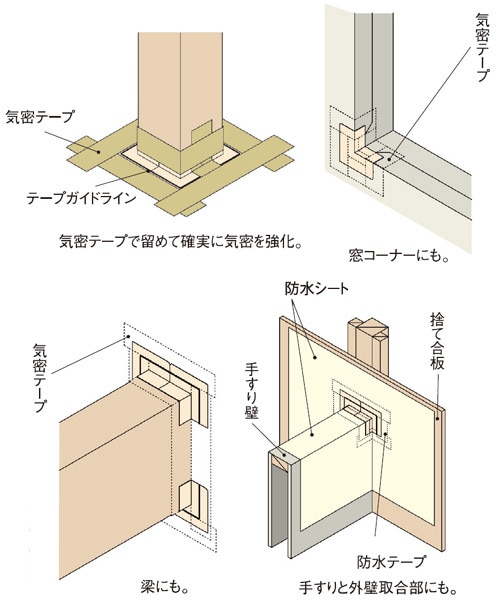 天井・床の気密層と柱周りの煩雑な気密処理が簡単!
