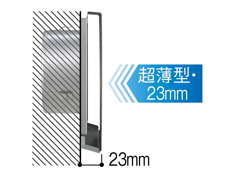- 壁からの出っ張りが23mmと少ない、超薄型のスリムフードです。