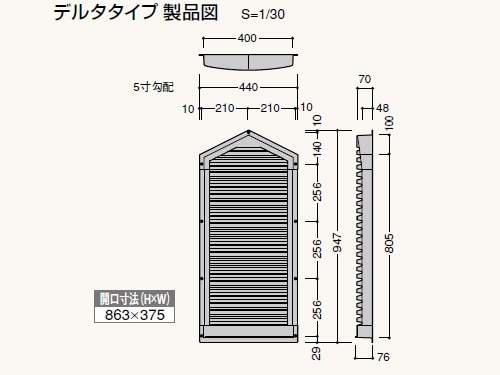 - 雨返しリブ構造で雨水の入りにくい構造です。