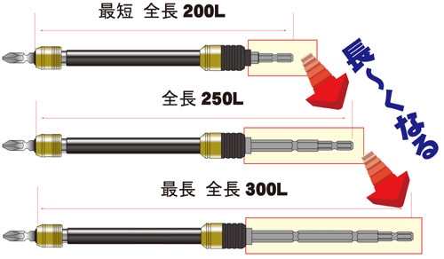 作業にあわせて長さを変えられる、伸縮ソケット。