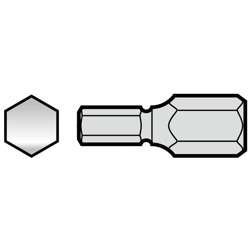 溝付超短ビット 六角レンチ 6×19mm