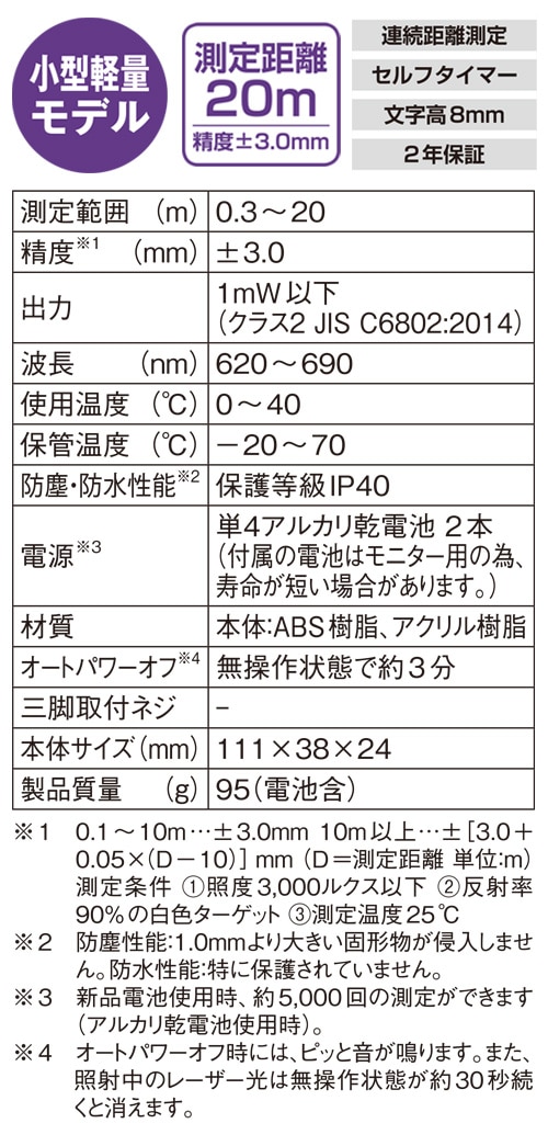 レーザー距離計 L-MeasureBK20 大型液晶