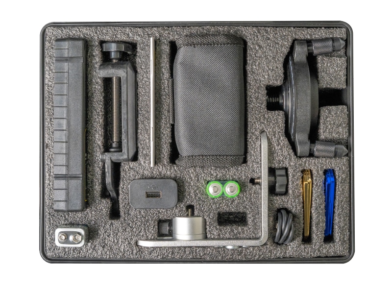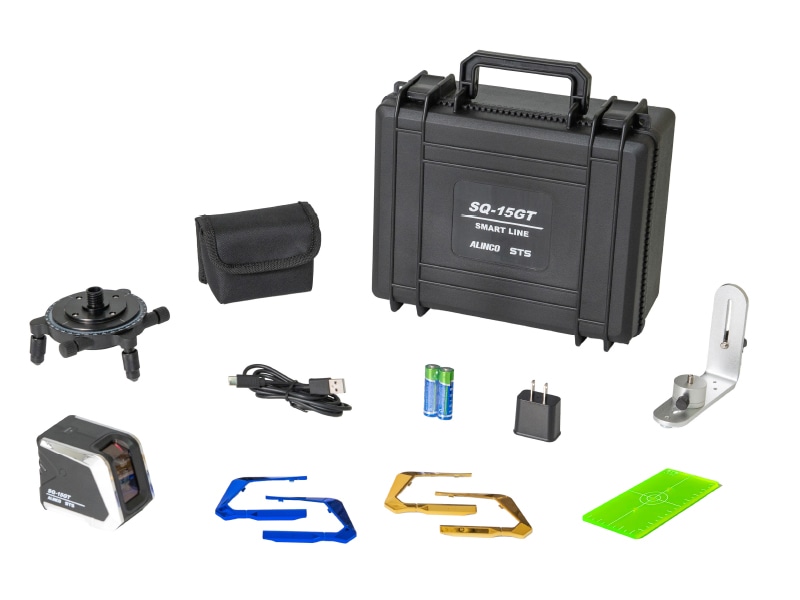 - マグネット付L字金具 、専用回転微動台座、専用収納ケース、専用ハードケース、カード型グリーンレーザーターゲット、取扱説明書