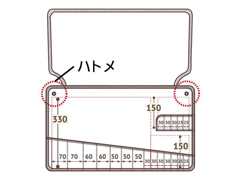 - 大工道具袋で定番の鑿巻き。そのロール方式を採用しました。