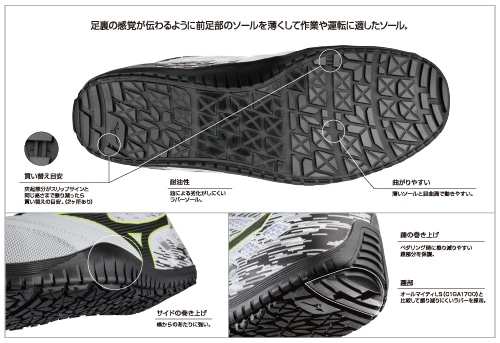 安全性と耐久性に加え、柔らかい履き心地と動きやすさが特長のワークシューズ