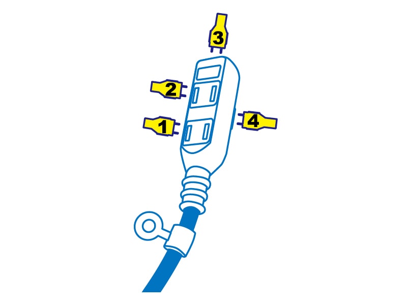 - 接続機器の異常や使い過ぎが原因で15A以上流れるとブレーカーが作動し、通電を遮断します。