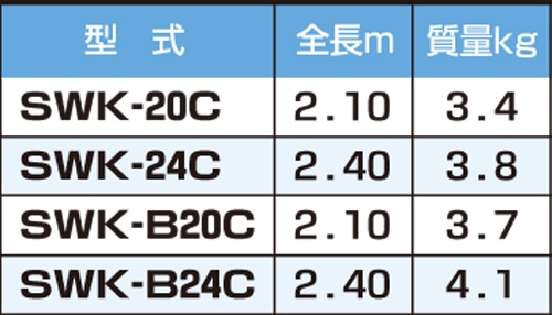 - SWK-BC型:電柱支え・巻付けベルト標準装備。