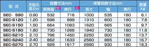 アルミ専用脚立 天板の高さ2.70m 収納時フラット