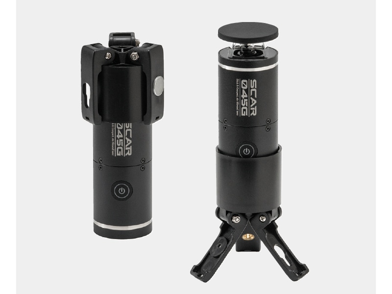 - 付属の脚付保護キャップは、レーザー照射口の保護または水平ではない場所に設置する際の調整用の脚としても利用できます。