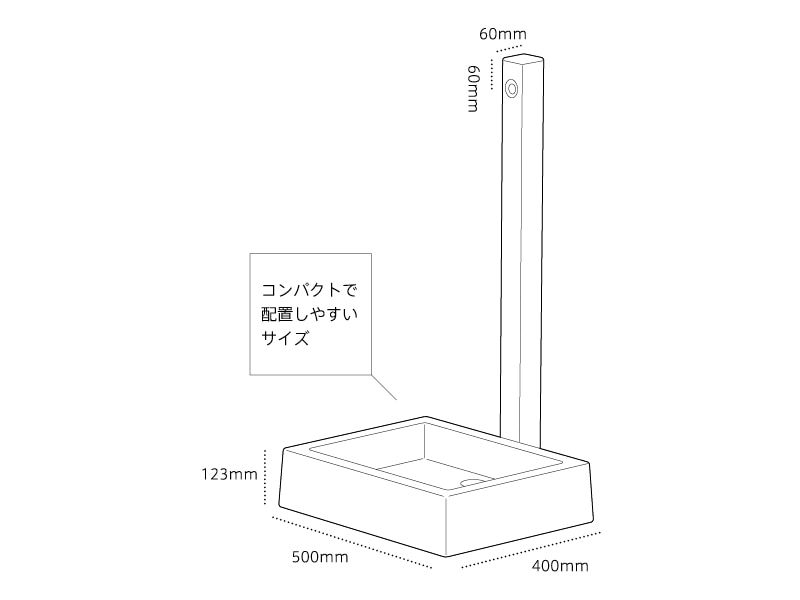 - 流しは高耐候性樹脂、水栓柱はアルミ製で屋外での使用に適した材料を採用。